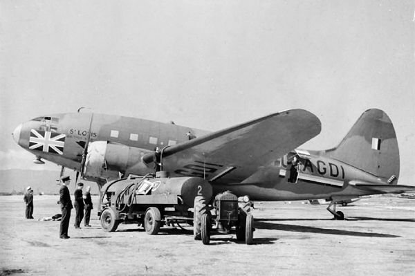 When France was invaded in 1940 and Italy entered the war, Britain found itself cut off from its empire and the free world with few transport aircraft capable of reaching even neutral Portugal. All civilian aircraft orders (including nine Douglas DC-5s) had been cancelled by Government Minister Harold Balfour when war was declared, but by fall 1940 Britain was again shopping in America for airliners with a decent range. Balfour was aboard the second BOAC flying boat service* to La Guardia in August 1940 and he persuaded Juan Trippe of Pan American to sell three brand new Boeing 314 “Clipper” flying boats at over $1 million each. These had the range to reach Bathurst (Banjul) in British Gambia (if necessary non-stop, from the U.K.). These Boeings, which they named the Berwick, Bangor and Bristol, arrived in May 1941. (* The service, using Short ‘Empire’ boats, had to be abandoned after five round trips. Balfour reportedly was acting on his own initiative and was criticized by Churchill over the unauthorized purchase of the “Clippers.”) In 1941 Britain was allocated some 18 Lockheed and Douglas twins second hand by the U.S. for the trans-Africa route from Gambia and Nigeria to Sudan and Egypt. These were flown to Africa via Brazil by Pan American Ferries. In a separate deal Pan American Africa was contracted by Churchill to operate an airway across Africa for the British using Pan American aircraft. BOAC commenced their Atlantic Return Ferry Service, between Prestwick and Gander, with stripped down early B-24 models (LB-30s) in 1941. Other types offered to Britain by Hap Arnold in the 1941 allocation talks (to speed up the return of American contract ferry pilots) included a Boeing B-15, a Curtiss CW-20 and a DC-4. The DC-4 offer is a puzzle -- perhaps the DC-4E prototype, sold to Japan in 1940, was still showing on Arnold’s list of surplus transports? (The first production DC-4/C-54 did not fly till 1942). The B-15 did take up transport duties, but with the USAAF in the Panama Canal Zone. Of the three, only the Curtiss CW-20 prototype fitted with long range tanks, registered G-AGDI and named St. Louis, materialized at Prestwick, Scotland, in September 1941. It had been ferried across the Atlantic by BOAC Captain A.C.P. Johnstone after a payment of £70,000 ($280,000 back then). BOAC first used St. Louis on a flight to Lisbon, Portugal from Whitchurch, Bristol, on December 12, 1941, returning next day. On December 27 it flew Whitchurch-Prestwick-Whitchurch then back to Prestwick on December 28, not returning to Whitchurch until February 14, 1942. After a day trip to Hurn on February 24, it was positioned to Filton, Bristol, on February 28 returning to Whitchurch on March 2. St. Louis next flew via Filton to RAF Portreath, Cornwall, for fuel on March 6 reaching Gibraltar on March 9. It then proceeded onward to Bathurst, Gambia, on March 11, a . . .