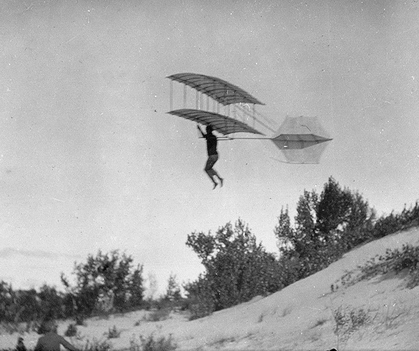 Flight Not Improbable, After a successful career in civil engineering, the 51-yearold Octave Chanute resigned his high-paying position as chief engineer and assistant general superintendent at the New York, Lake Erie & Western Railroad Co. in 1883 to start a private consulting practice. He had told fellow American Society of Civil Engineers (ASCE) members in 1880, “If engineers desire to take a higher rank than they now occupy in this country, they must study new paths for themselves, and be no longer men of routine, ordered hither and thither by promoters of schemes and the magnates of Wall Street.”[1] He believed that visionary engineers were responsible for technical developments and inventions, and that they could solve just about any technical problem. Early in his working life, Chanute had become interested in manned flight; he had watched Silas Brooks inflate his balloon in Peoria, Ill., in August 1856 and watched with amazement as the balloon and its passenger drifted away. Then his father, living in Paris, France, mailed him a 32-page pamphlet on the history of balloons and aerial locomotion,2 describing not only the many attempts to fly during the past centuries, but also howsome inventors used the power of nature as they tried to achieve manflight. Seeing writeups and images of various flying machines probably made him smile at times, but not knowing any better, Chanute clipped and filed everything on aeronautics in unlabeled wooden storage boxes, placed neatly in his bookcases. He compiled a nine-page manuscript on “Mechanical Flight” in late 1878 and another one in 1882; neither manuscript was finished and thus not published. In the interest of his career and his (or his family’s) social standing, this topic was taboo, to be discussed only behind closed doors and away from the general public. . . . .